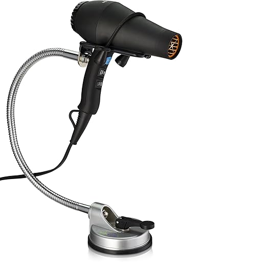 People are flipping over this hand-free blow dryer mount, which lets you easily and conveniently attach your blow dryer to any page so that you can style your hair with two hands and without shoulder gap. It has a heavy duty suction cup, and there is a neck of 360 degree rolling for the angle that you need.